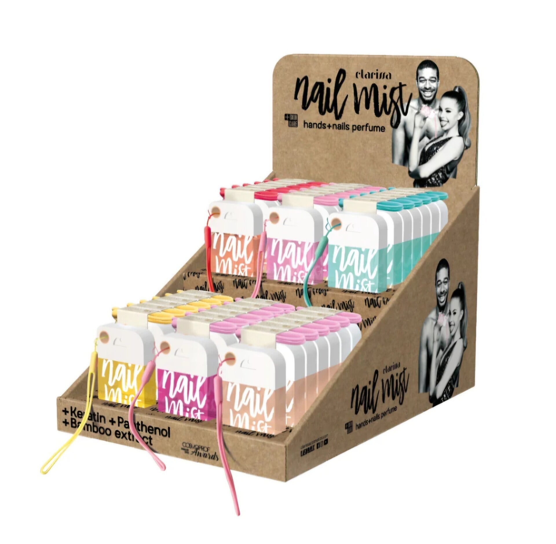 Alle Nail Mist-parfums zijn verrijkt met keratine, panthenol en bamboe-extract. Keratine is de stof waaruit de nagels zijn samengesteld, een vezelachtig eiwit bestaande uit aminozuren, vitamines en sporenelementen, die beschadigde, schilferende en verzwakte delen versterken, beschermen en herstellen.